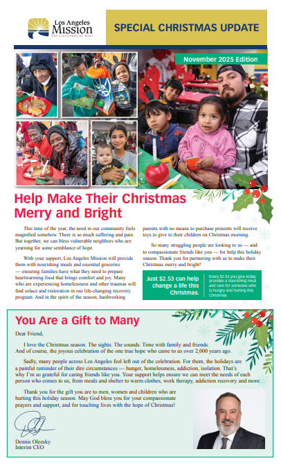 In the November issue of Crossroads, you will read inspiring stories about how your support helps change a life this Christmas season. Please download our November issue of Crossroads and read about what’s happening at the Mission this month.